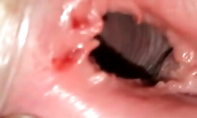 Amateur honey's slimy slit leaks out cum